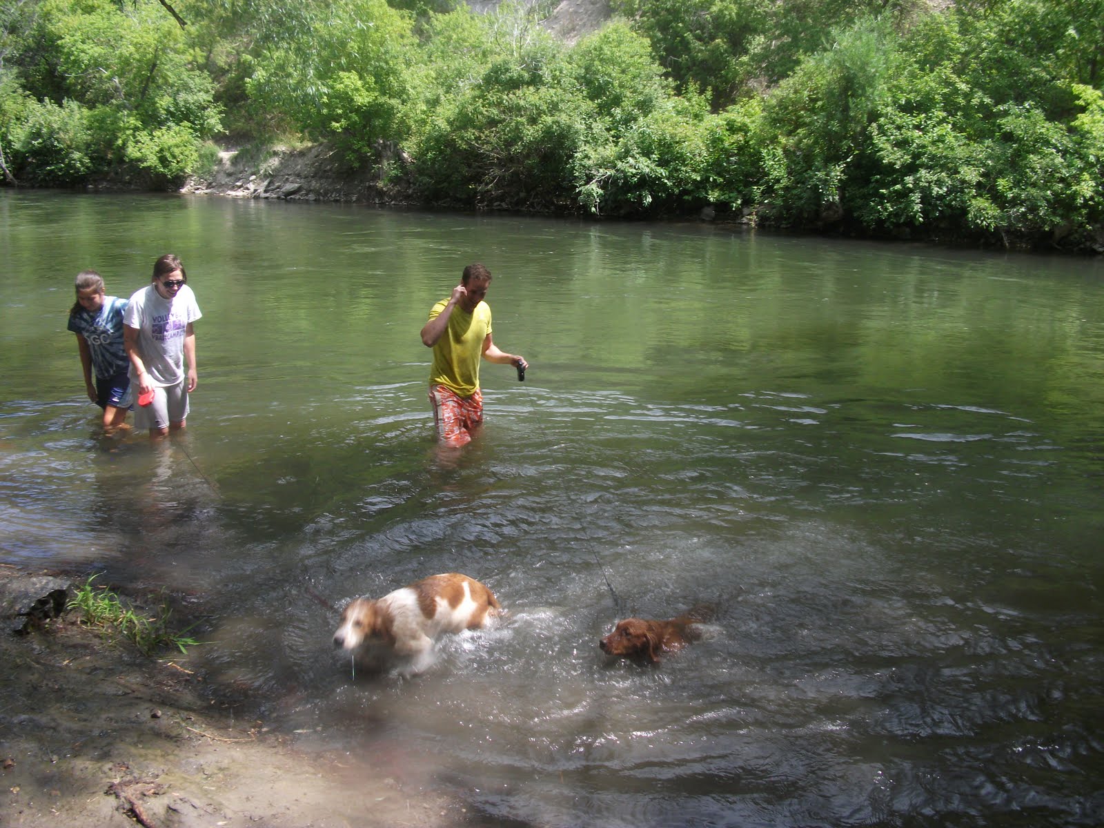 Anyways, after some failed attempts to find a place to swim with the dogs, we decided to go and swim in the Provo River. The day was HOT, as it usually is, but the water was freezzzzzzing. It was one of those colds where your body went numb after 2 minutes in the water. It was cold, but we still stayed. I threw Leia and Luke in the water and of course Leia hated it while Luke seemed to be having the time of his life. It was so funny to see how different they reacted.